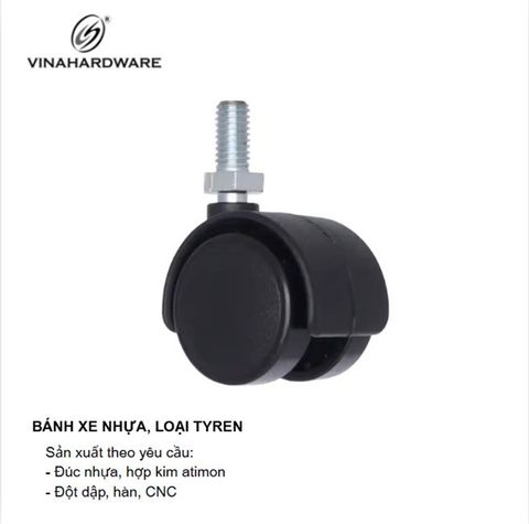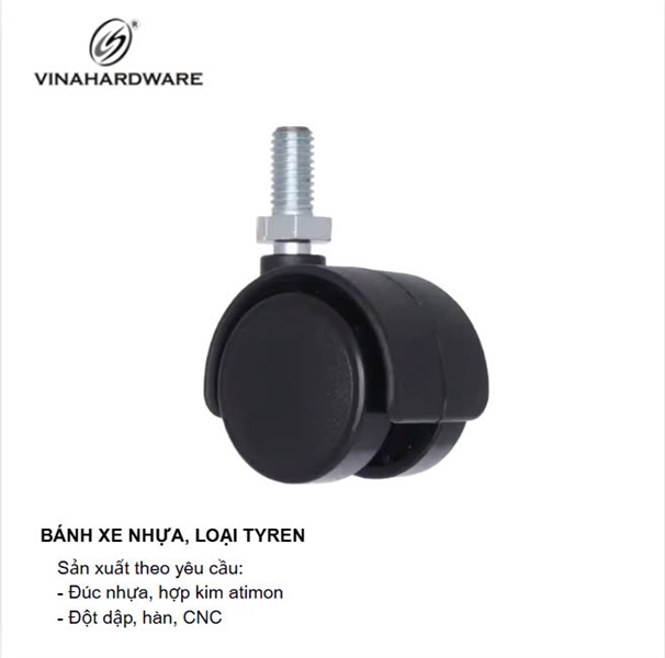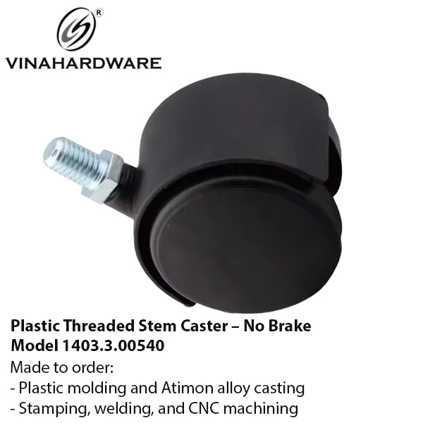 Bánh xe nhựa Vinahardware 1403.3.00540 với thiết kế ty ren tiện lợi và bánh đôi linh hoạt là giải pháp tối ưu cho các thiết bị nội thất như tủ, ghế, kệ trưng bày cần di chuyển thường xuyên mà vẫn đảm bảo độ êm và thẩm mỹ.