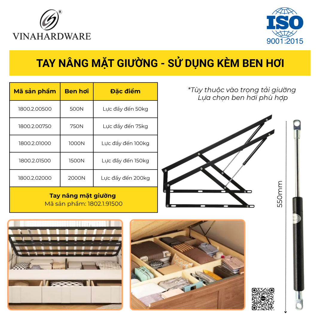 - Đối với giường dài trên 1500mm, nên sử dụng tay nâng loại 1500mm.
