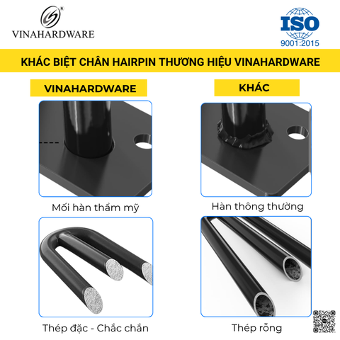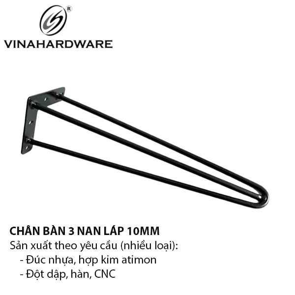 Chân bàn 3 nan láp của Vinahardware được sản xuất từ thép đặc Ø8mm | Ø10mm, kiểu dáng hairpin hiện đại, giúp tăng độ cứng và ổn định cho bàn. Lớp sơn tĩnh điện đen bảo vệ khỏi rỉ sét và tăng độ thẩm mỹ. Phù hợp cho bàn cafe, bàn làm việc, bàn DIY hoặc ghế băng.