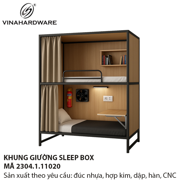 Khung giường tầng Sleep Box 2304.1.11020 được thiết kế tối ưu cho không gian sống nhỏ, mang lại sự tiện nghi và an toàn. Với kích thước 850×2000mm và nệm 900×2000mm, sản phẩm phù hợp cho nhiều mô hình lưu trú như ký túc xá, homestay, hay nhà ở công nhân.