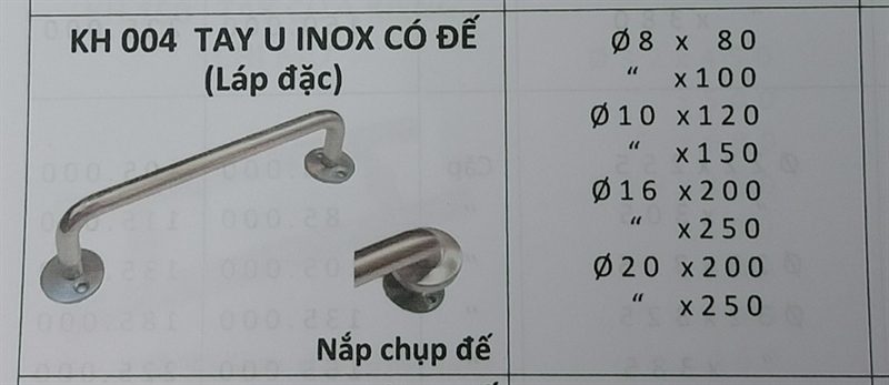 Tay nắm cửa chữ U, có nắp che, inox 201 - HD0021I150