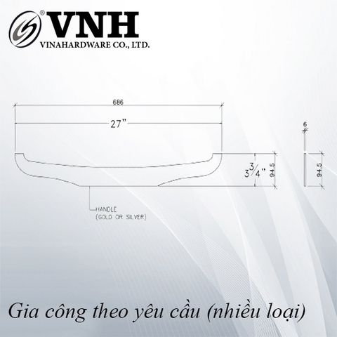 Tay nắm dài 965x130.5mm, inox304, xi mạ PVD - VNH9651305-VNH9651305