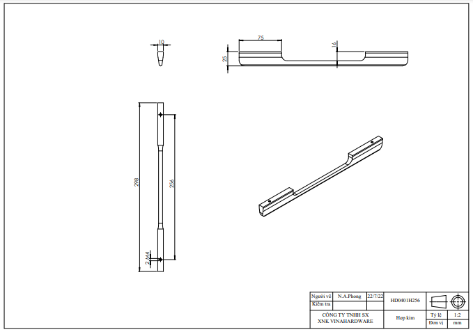 Tay nắm tủ hợp kim nhôm loại nặng, màu vàng hồng - HD0401H256