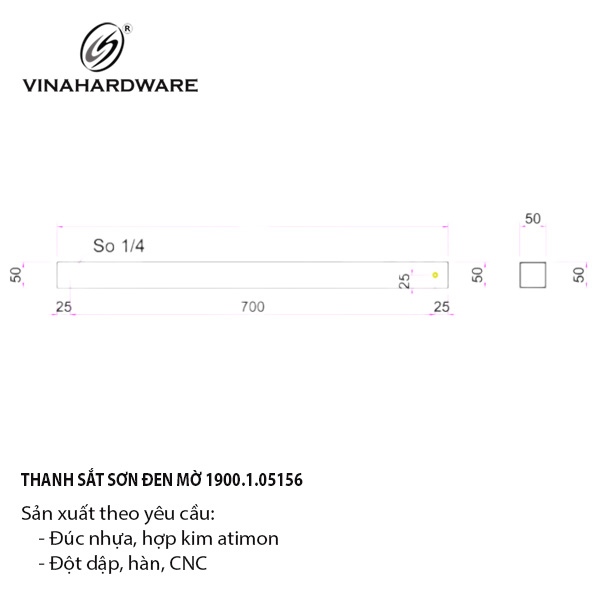 Thanh sắt, sơn đen mờ Vinahardware - VNH203550B